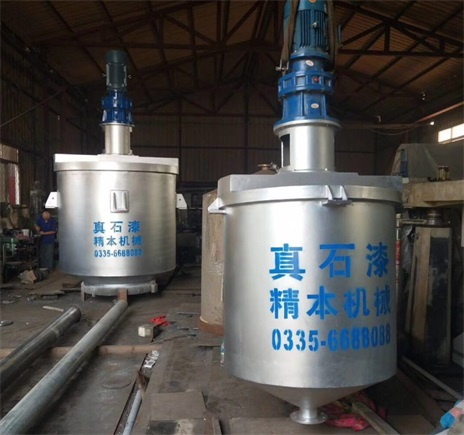 真石漆釜是根據真石漆的工藝特性,分為單軸型和雙軸同心型。雙軸同心型具有慢速刮缸功能,運行時能使物料進行三維翻滾,使物料快速均勻混合,并有效的消除死角及物料掛壁。物料攪拌和調色在同一釜內完成。筒體采用自行研發的打磨機拋光而成,便于沖洗,換色,使物料大大減小了色差。